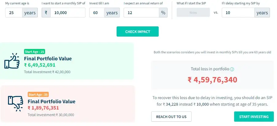 You will get to know the cost of delaying the investment versus starting the investment now.